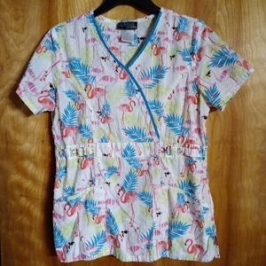 Flamingo scrub top small Runway by Cherokee