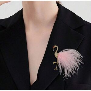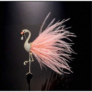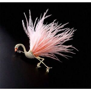 Absolutely stunning and gorgeous pink Flamingo brooch with sparkling crystals in gold setting and adorned with pink real feathers. Fun and whimsical addition to any outfit.
