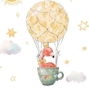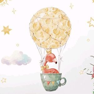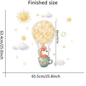Flamingo wall decal/sticker. Cute cartoon flamingo in a hot air balloon. PVC waterproof. Removable. Approximately 25x25.8”. Bundle to get a discount.