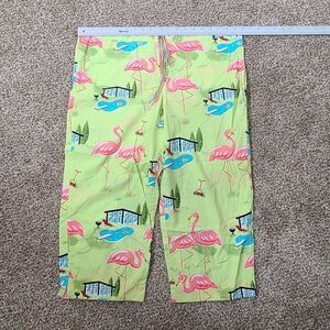 Nick & Nora Pajamas Flamingos Poolside. Size large. EUC. Not flannel, fabric 100% cotton. Nick & Nora are no longer in business, so these can't be bought in stores. So these are rare, especially this fun, cute flamingo pattern! Measurements: Shirt: pit to pit: about 17 & 1/4in, length: about 24 & 1/4in, Pants: waist: about 19 & 3/4in, inseam: about 19 & 1/4in. Pants are drawstring capris. Top is a tank top. Top is a softer cotton.