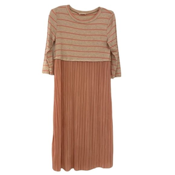 Flamingo Urban Pleated Stripe Midi Dress Size Large