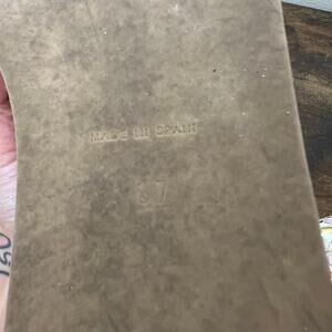Condition: Preowned - Some staining on platform and spots on leather as shown.