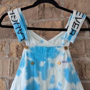 Flan Labs Aqua Blue White Tie Dye Overalls Size XS Forever Laughing at Nothing