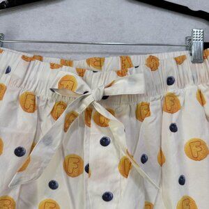 Flan Shorts Mens XL White Blueberry Pancake Print Cotton Drawstring Pockets