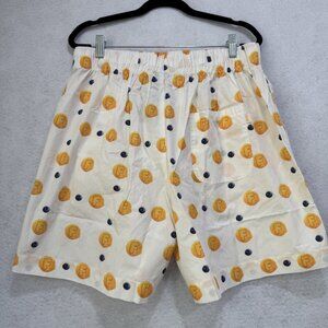 Flan Shorts Men XL White Blueberry Pancake Print Cotton Drawstring Pocket Brunch
