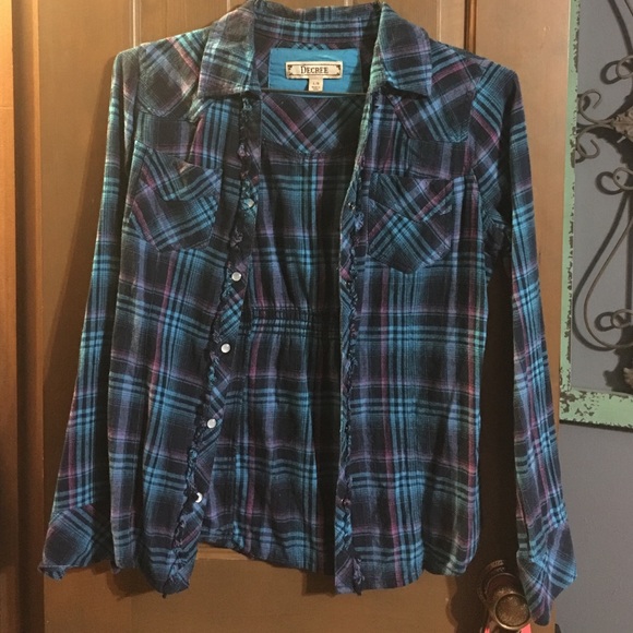 Comfy and loose fitting flannel, it has been worn a few times. No wear or damage though!