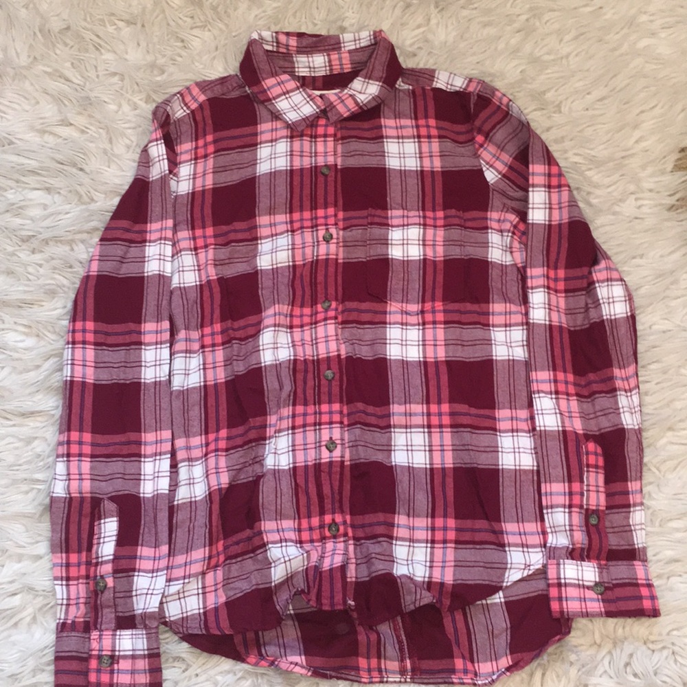 Pink, red and white checked flannel