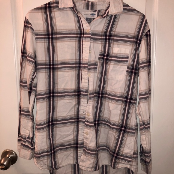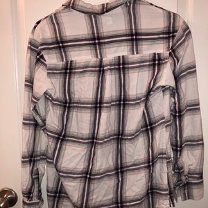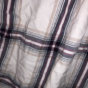 White, navy, cream and purple flannel. Only worn a couple times. Soft and adorable. It’s boyfriend fit so it’s supposed to be a little bigger. Perfect for fall and winter!