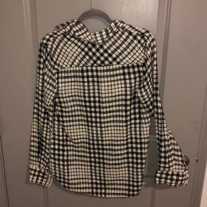 Black and white checked flannel blouse (thin material). Quarter button down.