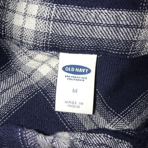 old navy short sleeve blue and white flannel, size m