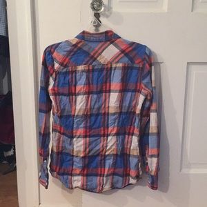 Red, blue, tan, and white button down flannel!