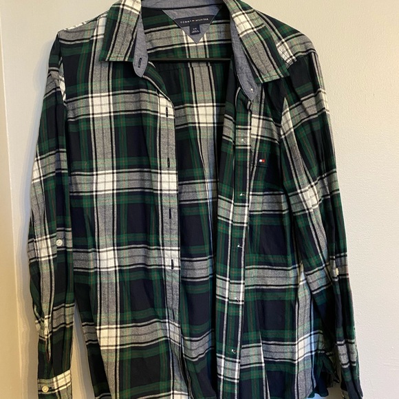 Blue green and white Tommy Hilfiger flannel in women’s size large