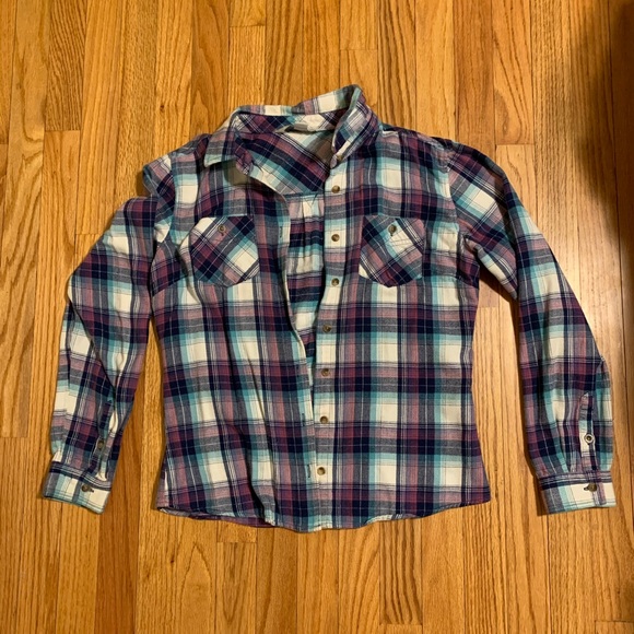 Women’s purple and blue flannel. Worn a couple of times.