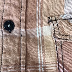Medium flannel, vintage washed and can fit a sweatshirt underneath. Crafted in California