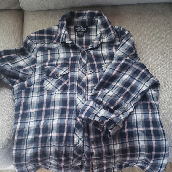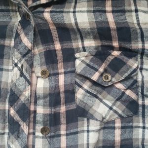 Juniors - Navy, pink, cream colored flannel, metal buttons, roll cuffs or wear long.