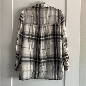 black and white flannel. Soft and thin material. Very cozy but not too warm.