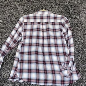 White, red, and blue flannel shirt