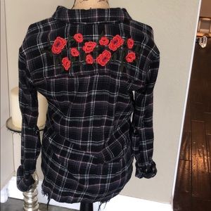 Ripped flannel with flowers on back