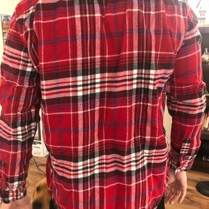 Red plaid flannel. Thin flannel and so cozy! No rips, stains, or tears. It is a size XL but fits like a large - so I marked it as a large