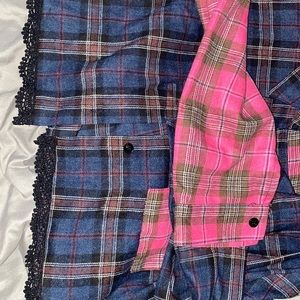 Color block tartan print flap pocket crop blouse