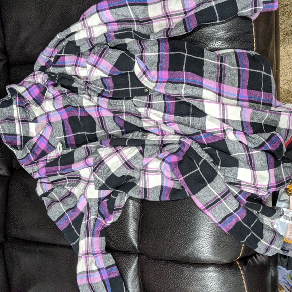 Women's Flannel with pink as center color. Slightly worn, but in good condition. Size large