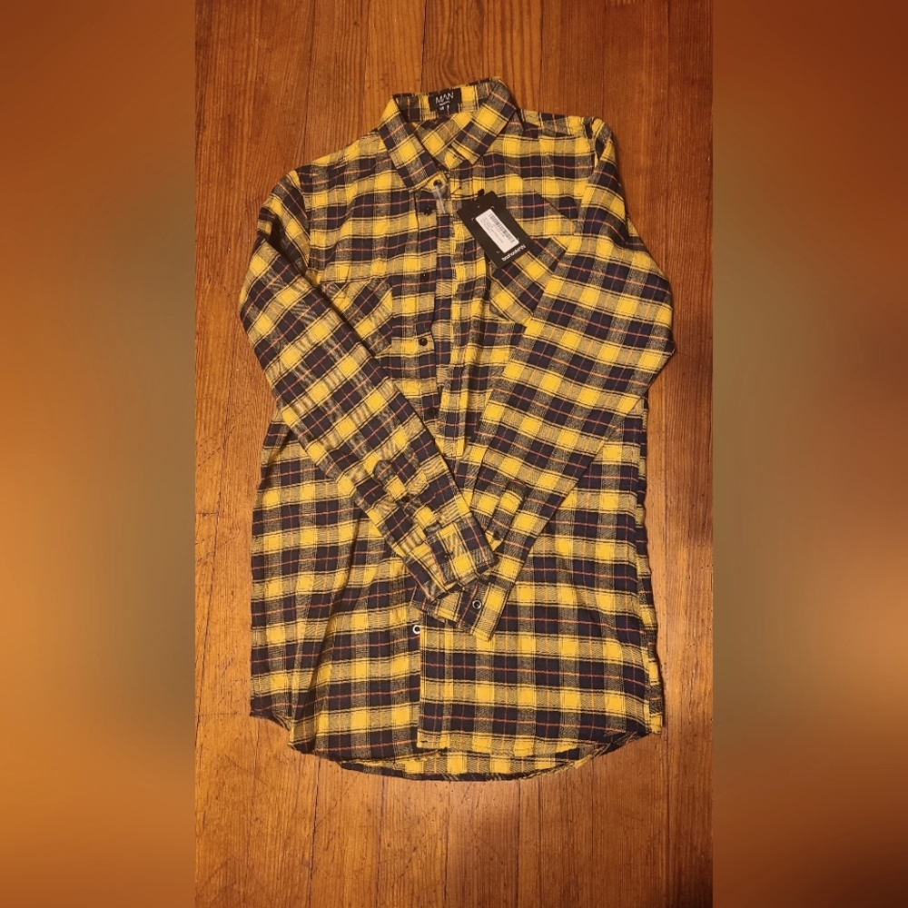 Boohoo man medium flannel yellow, orange and black brand new never worn