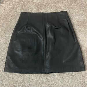 Elevate your style with this classic black leather skirt. Perfect for any occasion, it offers a sleek and sophisticated look.