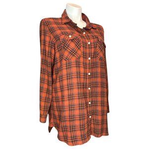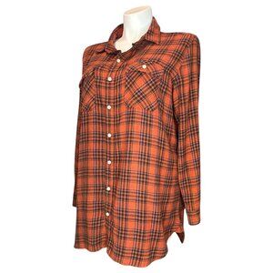 Flannel Boyfriend Fit Button Down Women's Size XXL Long Sleeve Orange Casual Cotton Fall