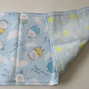 They are made with 2 layers of flannel fabric. Reversible with blue colors and pigs. Perfect for a baby boy gift.