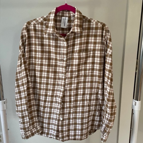 Casual soft light flannel comfy button-down with a classic checkered pattern by Collusion. Ideal for chilly days and nights!runs oversized in fit.