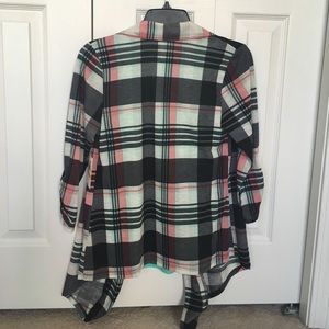 Flannel Cardigan with Lace Up Tank Top