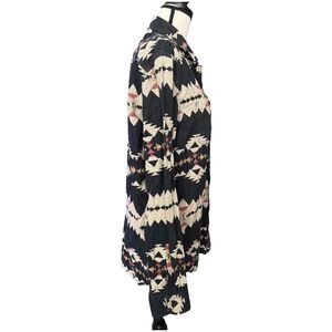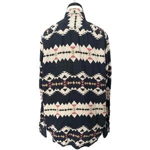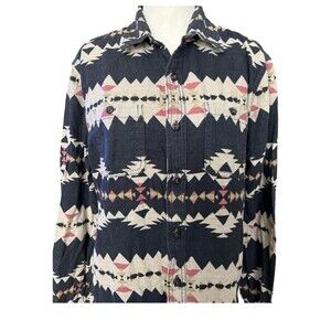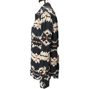 Flannel Men Black Shirt Tribal Print Button Up Long Sleeve Men's Size M