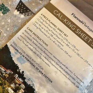 Flannel Portugal Cal. King Grey Background with Animal & Plant Print Sheet Set