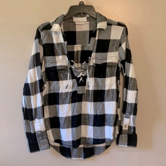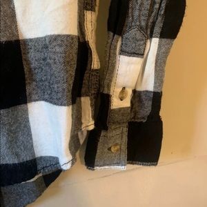 NWOT Black and white flannel top. Size M Brand is SO