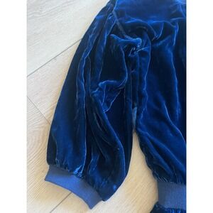 Flannel Wright Velvet Romper Playsuit Blue Ruffle Trim XS Petite Designer