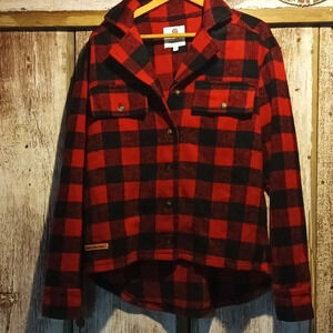 Flannel buffalo check plaid button down shacket pockets oversized small