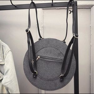 This cute bag is very versatile. The strap can be adjusted to be worn as a cross body, shoulder, or backpack. Gold hardware. Leather bow are the zipper pulls. Surprising spacious with an inside pocket and zippered pocket on back.