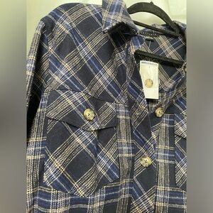 Blue and tan colors, brand new never been worn great material thick and warm.