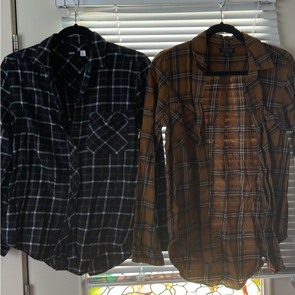 From left to right: $10 each! BDG, topshop, Madewell, and wrangler. BDG size S, topshop size M, Madewell size L, wrangler size S (men).
