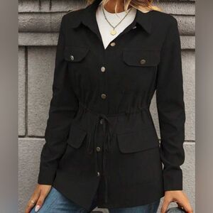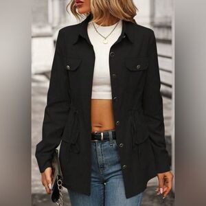 Flap Pocket Drawstring Waist Button Front Jacket NWOT Size Medium (6)