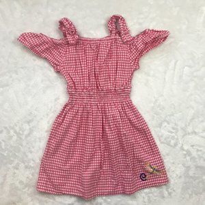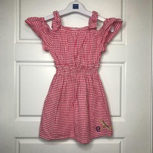 Flapdoodles Gingham Dragonfly Embroidered Dress Pink Cotton Sequin Girls Size 5