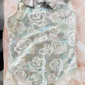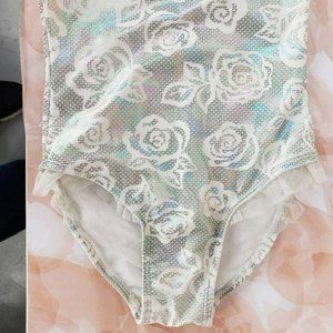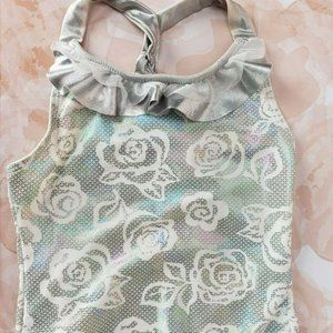 Flapdoodles Girl’s Size 5 Floral metallic silver one piece Swimsuit