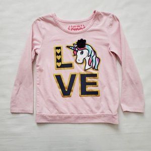 Flapdoodles Kids Girls LOVE And Hearts Unicorn Pink Long Sleeve Shirt Size 4
