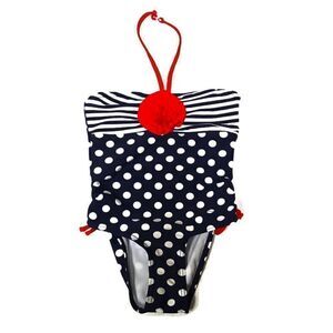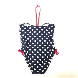 Flapdoodles navy polkadot rosette halter one piece swimsuit