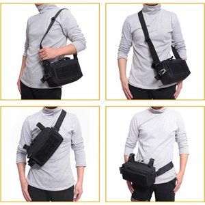-- The long adjustable strap allows you to use the pouch as a shoulder strap pouch and use it across your chest or use it as a fanny pack. This is a multi-purpose tactical molle pouch, use your imagination and use our pouches in other scenes.