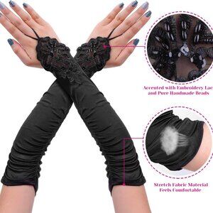 Long Satin Gloves: Measures approx. 15 inches, the prom satin gloves fit most and very smooth and comfortable to wear for its stretchy satin material, great for roaring 20s, the great Gatsby theme party