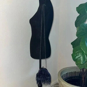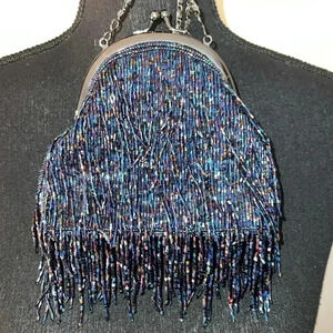 Flapper Styled Beaded Evening Bag Crossbody Clutch Shoulder Bag NWOTs Rainbow of Colored Beads, Purple, blue, copper, green with Fringe of beads around the button. in EXCELLENT condition!! Gun metal chain and hardware. No missing beads no stains on the inside. Gorgeous little evening bag!!