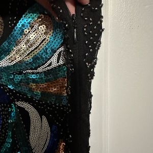 I love the colors of this dress!! It’s so beautiful 🤩 the beads are all intact, I’ve never actually worn this dress. It has an invisible zipper and a little bit of stretch.