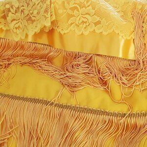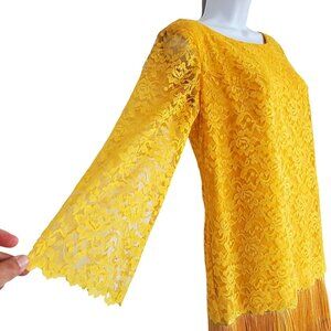 Yellow chantilly lace overdress with scalloped edges