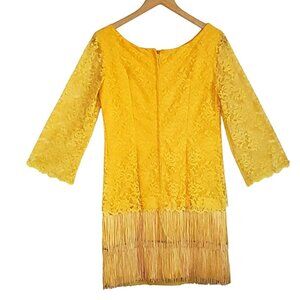 Flapper Dress Yellow Lace Vintage Costume Metal Zipper 60s A-line 2 4